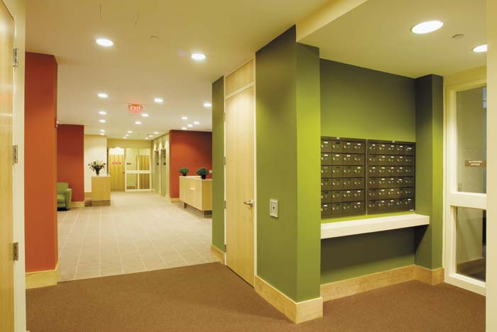 The project's innovative design includes many energy conservation features including "green building" materials. The building design offers heat recovery components in the HVAC system and energy-efficient windows. The exterior is finished in an array of attractive, durable, low-maintenance materials, including innovative zinc, terra cotta tile and resinous panel systems. The structure is complemented by outdoor features, such as sitting areas and a community garden.